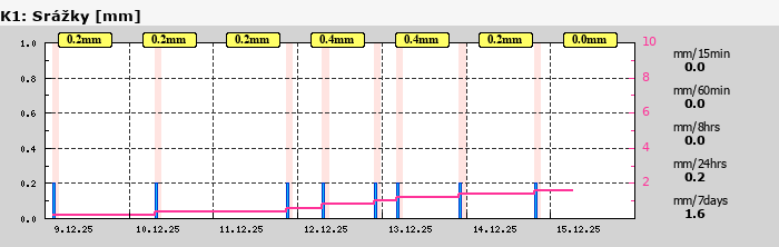 Poslední stav : 0 mm (Út 16.12.2025 06:00)
